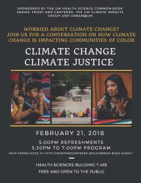 Join UW Department of Environmental & Occupational Health Sciences, Front and Centered, the Climate Impacts Group, Urban@UW, and UW School of Public Health for an evening discussion about climate change and equity in Washington State on February 21st, 2018 at 5:30 PM.